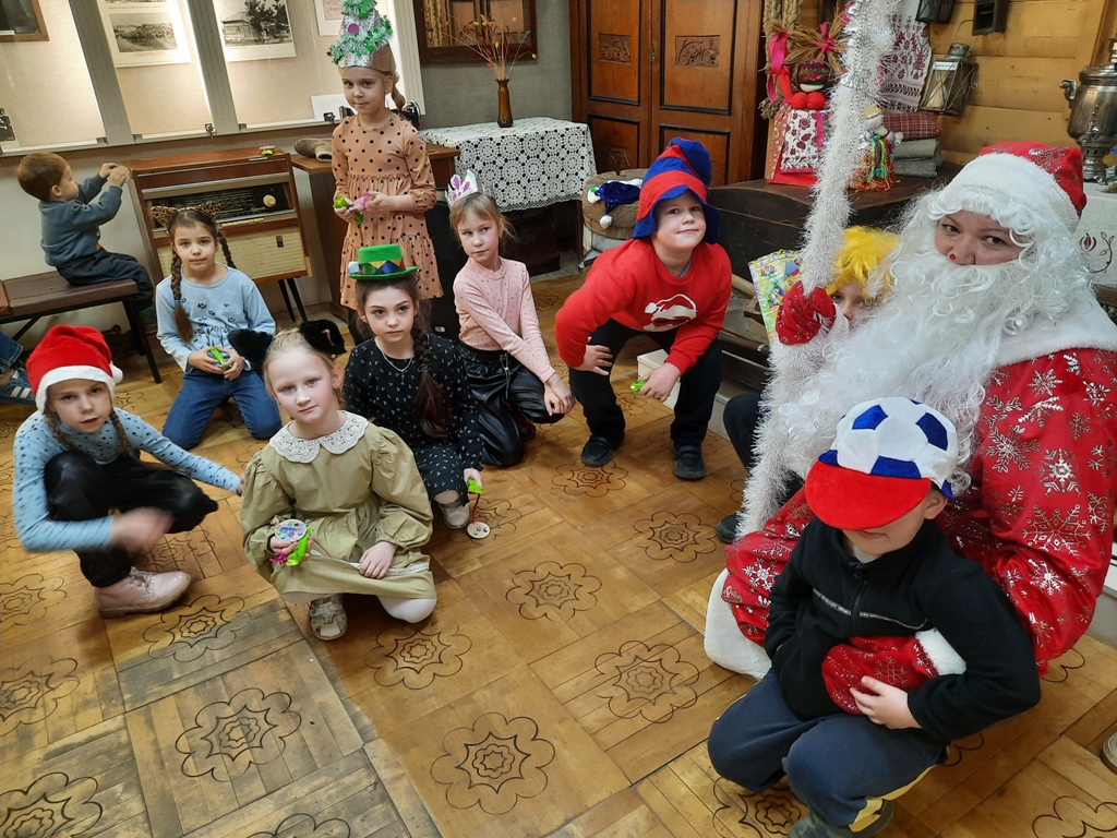 20 декабря в музейной новогодней гостиной происходили настоящие чудеса.Ребятишек и их родителей встречала настоящая Снегурочка. Вместе с ней на мастер – классе дети смогли проявить свои фантазии, разрисовав игрушку на ёлку. Настоящим сюрпризом стал приход Дедушки Мороза, который принёс в своём мешке сладкие угощения. Девочки и мальчики веселились с Дедом Морозом и Снегурочкой : разгадывали загадки, участвовали в конкурсах, хороводах и играх.