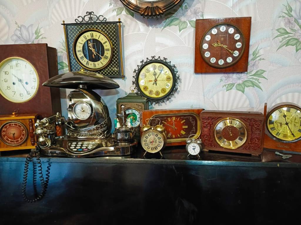 Коллекция насчитывает свыше 40 экспонатов. В их числе часы самых массовых советских марок: «Луч», «Победа», «Заря», «Чайка». На выставке можно увидеть настенные, наручные, карманные, каминные, старинные и более современные виды часов. Часы разнообразны по форме, технике и времени исполнения.